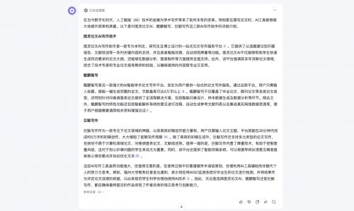 上传关键文献后,AI会迅速学习,进而生成与课题高度契合的内容,同时提供标准参考文献标注。