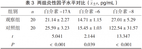 治疗后,西黄组患者白介素-17A、白介素-6及白介素-8水平显著低于对照组(P<0.05),见表3。