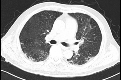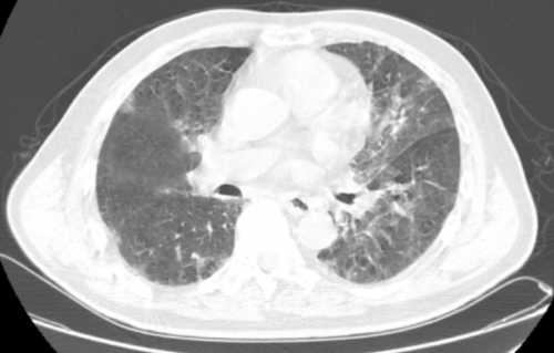 本次介绍一例合并食管癌免疫抑制状态的重症肺炎、急性呼吸窘迫综合征(ARDS)患者,在接受以西维来司他钠为核心的综合治疗后,氧和与炎症指标显著改善的病例。患者为食管鳞癌放化疗后,因“咳嗽、咳痰伴发热半月余”入院,影像学提示两肺炎症,经广谱抗生素治疗效果不佳,后经支气管肺泡灌洗液二代测序(NGS)明确为耶氏肺孢子菌、鼻病毒A及人巨细胞病毒(CMV)混合感染。入院时患者存在低氧血症(氧分压57.3 mmHg,血氧饱和度89.6%),符合ARDS诊断。在抗感染、抗病毒及糖皮质激素治疗基础上,加用西维来司他钠(0.1g q8h) 持续泵入治疗5天,患者氧合逐步改善,炎症指标下降,最终病情稳定出院。本病例为西维来司他钠在重症病毒合并耶氏肺孢子菌肺炎所致ARDS中的应用提供了临床实践参考。