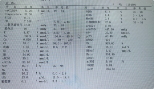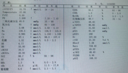 转入RICU时血气分析: