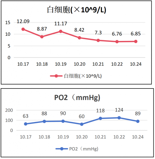 患者于2025年10月21日停止高流量吸氧,改为鼻导管吸氧,22日从ICU转入普通病房继续治疗。