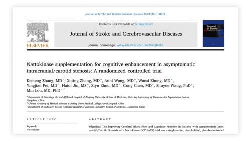 近期,光明网、中国新闻网等主流媒体相继聚焦了一项严谨的科研发现:由浙江大学医学院附属第二医院专家团队领衔、历时三年的RCT临床研究成果,即《纳豆激酶对无症状颅内/颈动脉狭窄患者认知功能改善的随机对照试验》,在美国国家卒中协会与日本卒中学会联合主办的国际权威期刊《Journal of Stroke and Cerebrovascular Diseases》上发表。