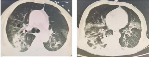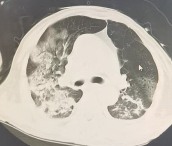 患者3天前无明显透因出现发热,体温最高38℃,未经系统治疗,患者自行服用”阿莫西林”,”布洛芬”,”氨溴索”以及”抗病毒口服液”后症状较前缓解。入院1天前上述症状加重伴喘息,体温最高38.5℃,自行口服药物治疗后病情未见明显好转,遂就诊于我院感染科门诊,因患者血氧持续下降,指尖血氧饱和度75%,请麻醉科插管后收入ICU。